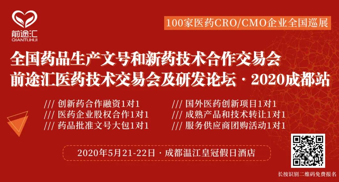 隨著疫情逐漸退去,全國解禁即將來臨,第56期醫(yī)藥前途匯“全國生產(chǎn)文號和新藥技術(shù)合作交易會”成都站勝利召開在望!在此前途匯邀請全國醫(yī)藥企業(yè)家及研發(fā)投資相關(guān)負(fù)責(zé)人,整理好企業(yè)研發(fā)和投資并購供需蒞臨參會,與大家面對面相互學(xué)習(xí)、品嘗四川美食、欣賞西...