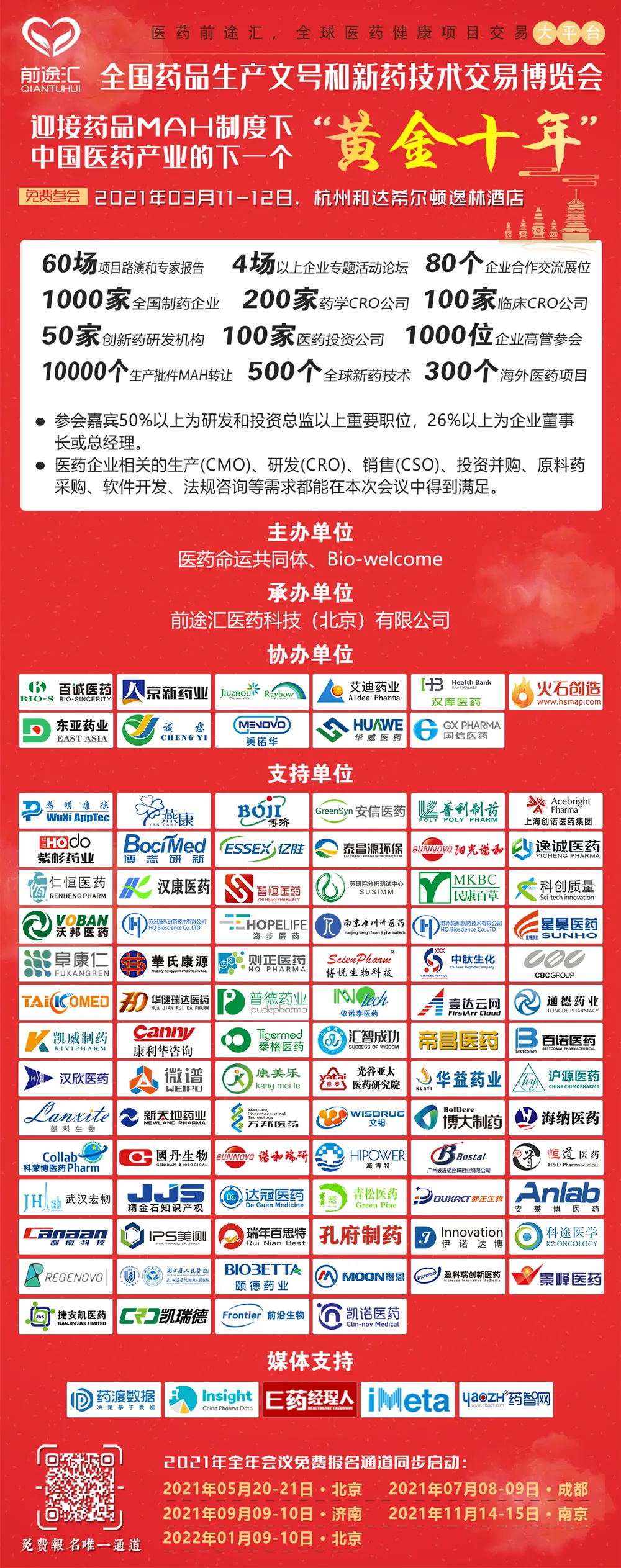 12月9-11日,第60期醫(yī)藥前途匯,暨2020'前途匯醫(yī)藥研發(fā)創(chuàng)新和投資并購年會在北京順利召開!來自全國1000多家企業(yè)的約1700位嘉賓參加了本次大會。在100多家協(xié)辦、贊助合作伙伴單位的鼎力支持本次大會取得圓滿成功!政策解讀、經(jīng)驗分享...